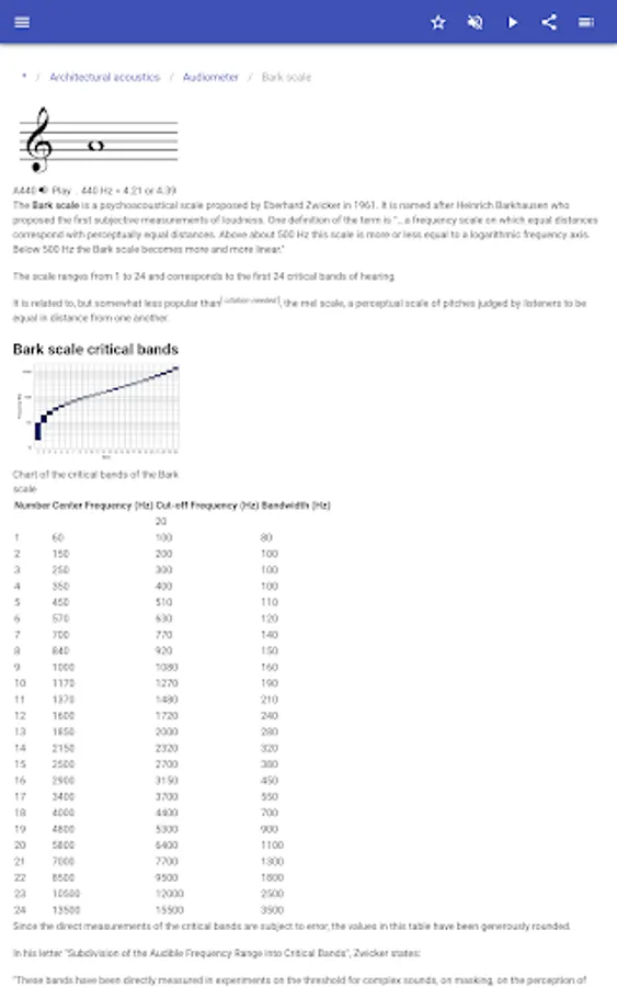 The appendix contains a description of acoustics.