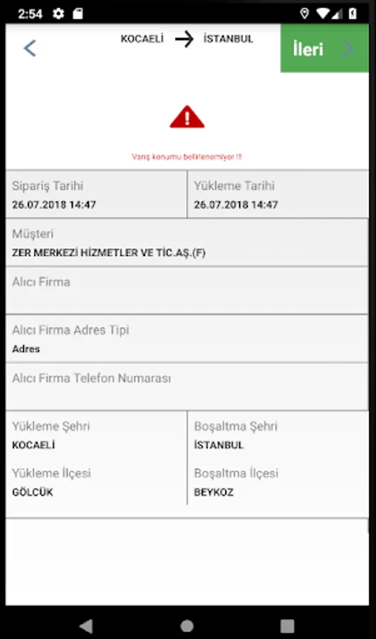 Öznil Logistics Mobile Application