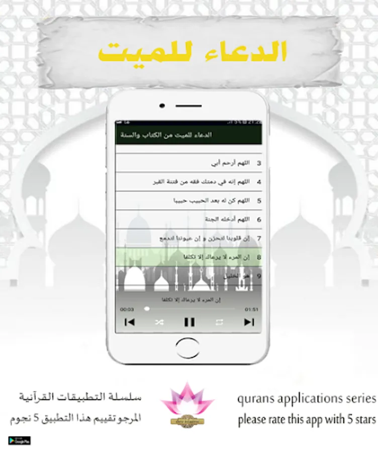 After downloading the application, you can listen to the "Supplication for the Dead from the Book and the Sunna" "for free anytime, anywhere and with ease.
