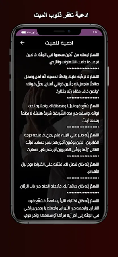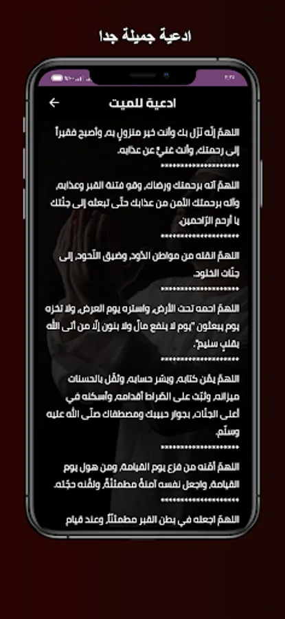 The application of a supplication for the dead - a supplication for the deceased: his book, without the net. You can hear and read many supplications through your mobile phone or tablet with ease and ease through one program that contains more than one supplication for the dead on Friday, and the application of a supplication for the dead written or text is also distinguished It is also a short supplication in addition to audio supplications and supplication response times for being free and it is also available on the store for Android phones. And you can download the supplication for the dead application with ease so that you can pray for whoever you want wherever you want and in high quality without the Internet.