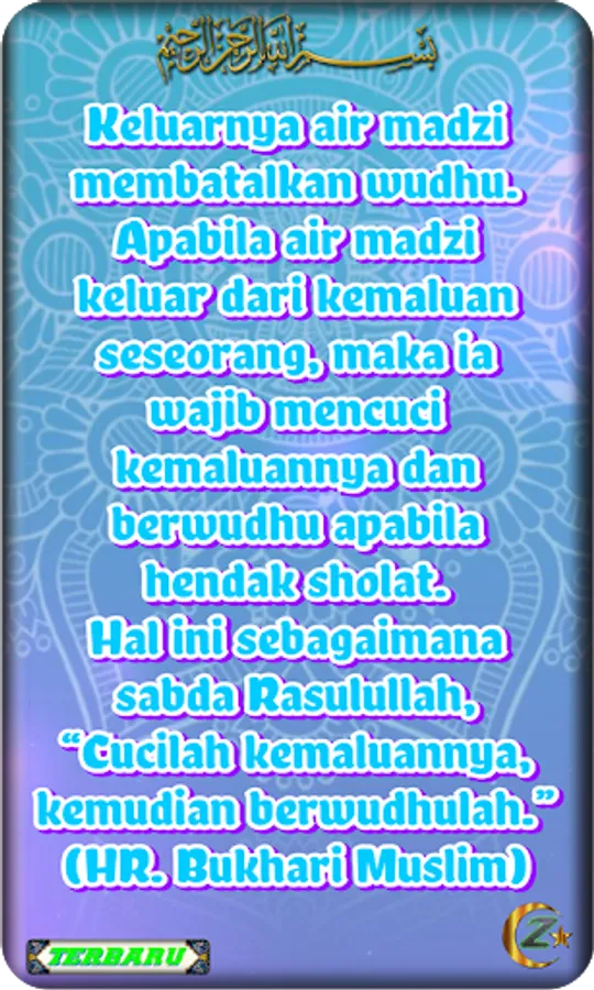 Madzi is water that comes out of the pubic, this water is clear and sticky. This water discharge is caused by lust that arises when someone thinks or imagines jima '(sexual intercourse) or when a married couple makes out (usually termed foreplay / warming). Madzi water comes out by not radiating. This discharge does not cause a person to become weak (unlike semen, which generally causes the body to go limp) and sometimes this water comes out unnoticed (not felt).
