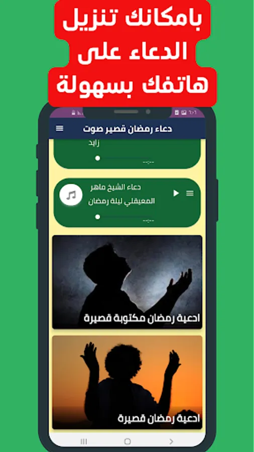 It contains Ramadan supplications, voiced in high quality, for all the sheikhs, as well as you can download supplications easily, and also written supplications are available that you can publish and share