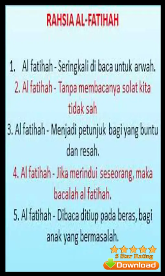 Surat al-Fatihah is a letter in the Qur'an is referred to as' Umm al-Fatihah kitab'Surat has many virtues fadhilah and Benefits and privileges of this sura Fatiha very much and outstanding.