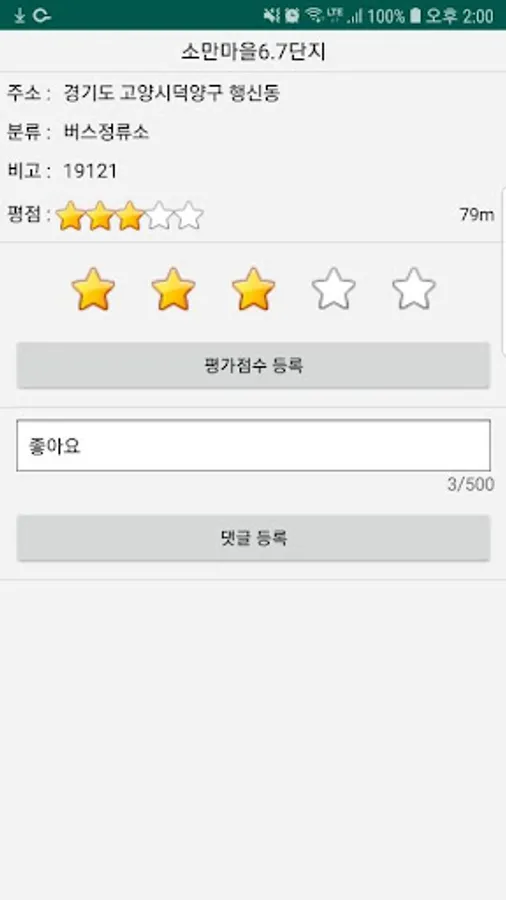 4. If you touch the '>' button in each facility item in the bottom list, you can register the evaluation score and comment in each facility.