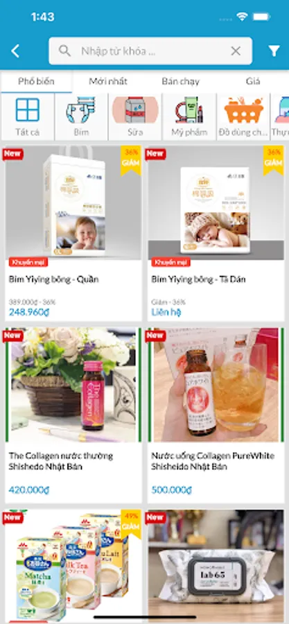 Diverse and rich products include: Cosmetics, Cosmetics, Household appliances, Mother and Baby supplies, Food and functional foods...