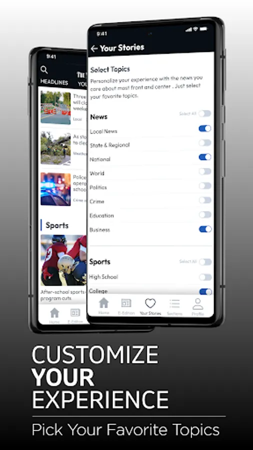 * Your Stories – personalize your experience by selecting the local news topics that matter most to you