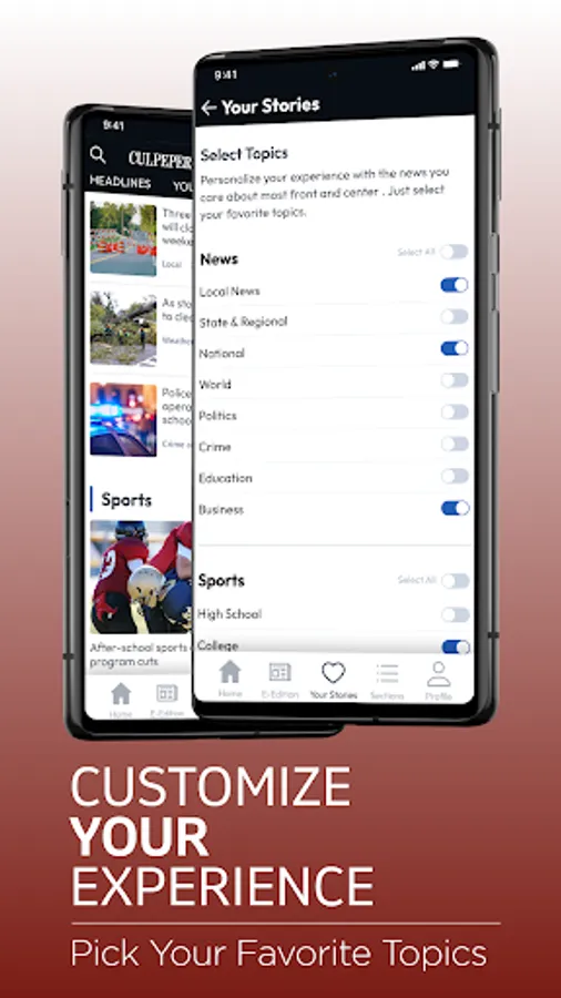 * Your Stories – personalize your experience by selecting the local news topics that matter most to you