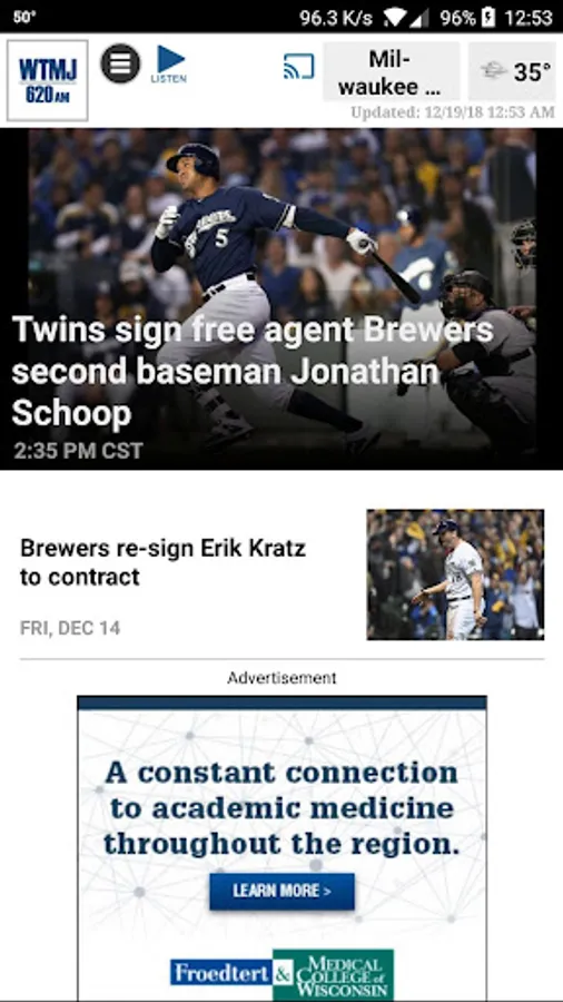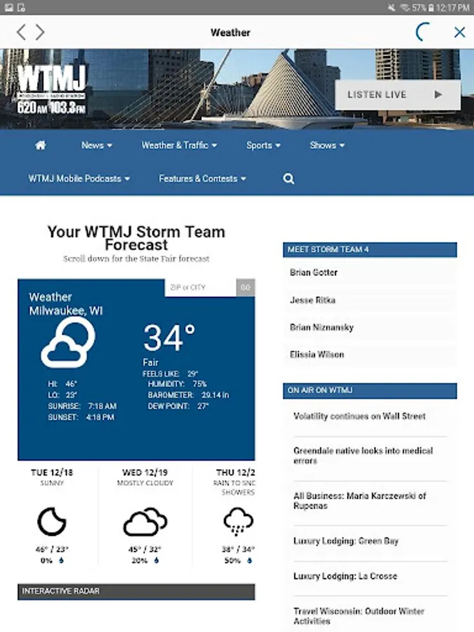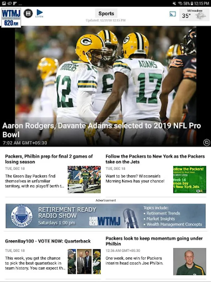 WTMJ is your home for live and local news, politics and sports coverage. We are the home of the Green Bay Packers, the Milwaukee Brewers and the Milwaukee Bucks. News, weather and streaming audio are just a tap away.