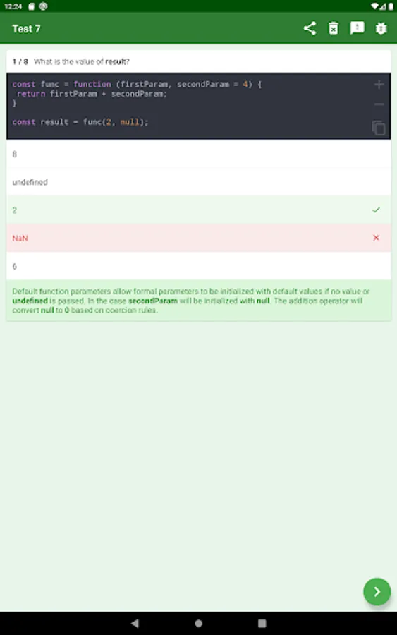 Have fun, learn and test all the fundamentals of JavaScript with JavaScript Quiz! Test your knowledge about all the basic features of JavaScript programming. Have fun practicing with the quiz. Further your career - or simply gain a new skills! Good luck!