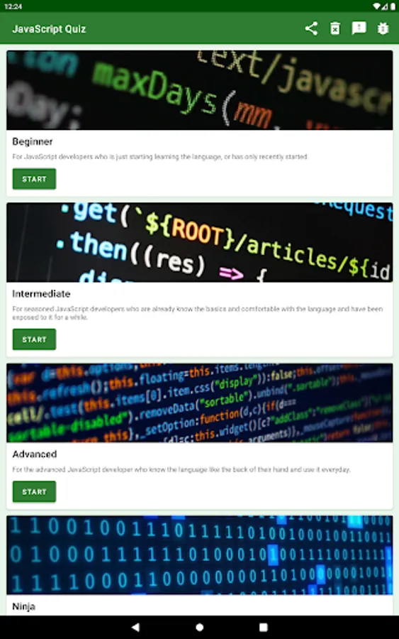 You can test your JavaScript skills with this Quiz. The test is not official, it's just a nice way to see how much you know, or don't know, about JavaScript. This will explain briefly all about JavaScript. Whether you are an experienced programmer or not, this app is intended for everyone who wishes to learn the JavaScript programming language by passing tests.