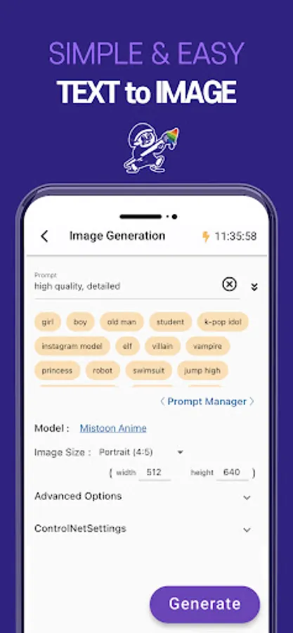 Unleash your creativity with the power of Generative AI! You can create millions of creative images with only a few tabs. State-of-the-art technologies such as Stable Diffusion, ControlNet, Upscaling, and Inpainting are at your fingertips. Create your own new world!