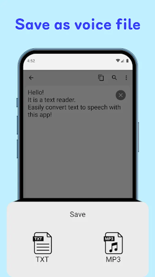 Text can be saved as a voice file.