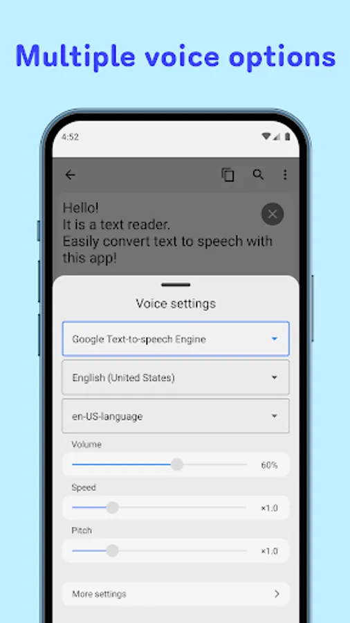 The speed and tone of the voice can also be adjusted.