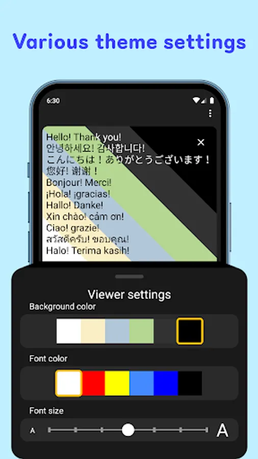 You can adjust the background color, font color, and font size.