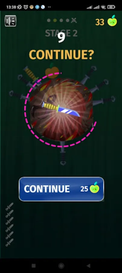 Missing the wheel and hitting already thrown knives on the wheel will earn you nothing but a fail and you have to start all over again.