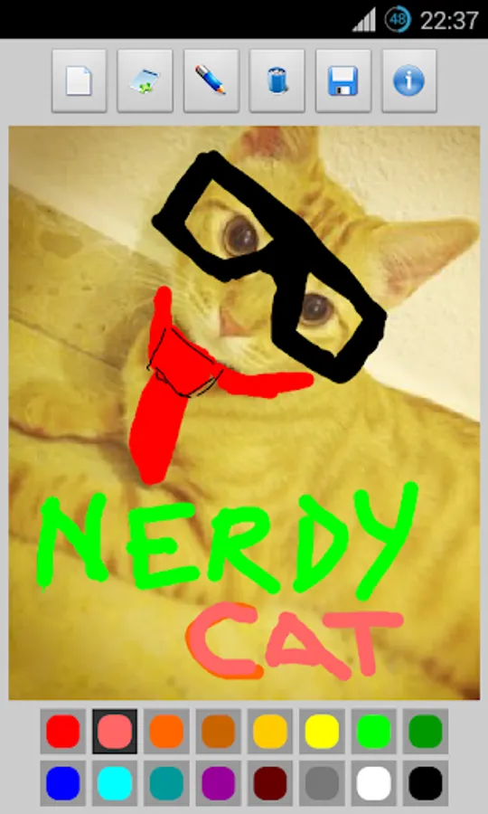This app also allows you to open and load files from your image gallery or even straight from your photo camera in order to edit them with the board to create funny and original images. After that they can be saved in your device.