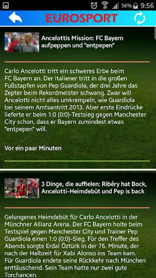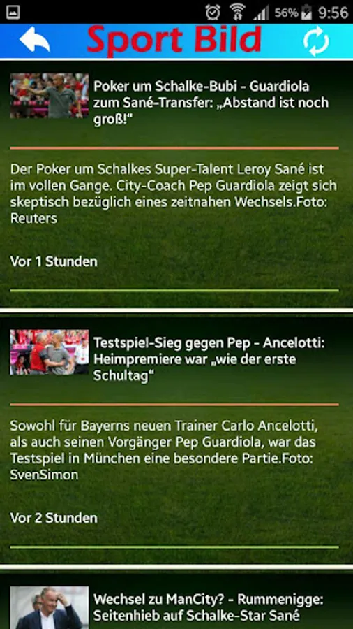 Thanks to this new newsreader you can all sports news from the major newspapers in Germany (Sports Image, Euro sport, The World, Sports chau, Sport1, Süddeutsche Zeitung, telecom sport and football) enjoy. * The application is fast, safe and effective thanks to technology RSS.