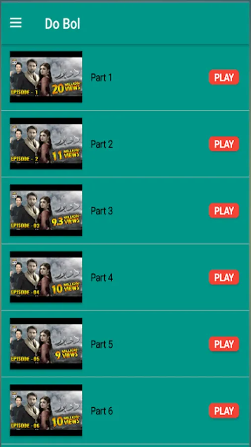 The content given in "Do Bol" drama app is available free on public domains. We have providing the way to stream videos. Content provided in this application is displayed using YouTube's public API. We do not host any of these videos/content. All the content provided in this application has the copy rights of their respective owners.