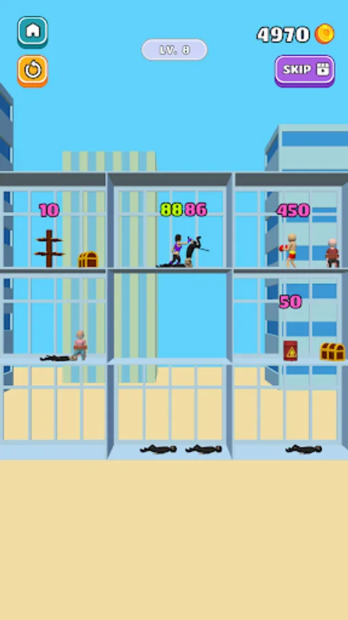 Tower Stick Battle Wars is a new tower stick game. Real tower wars and your stick hero are waiting for you. Defeat enemies in tower wars and become a stick hero. Move your stick hero to different floors in the tower and defeat enemies. Get more power from the hero in the tower. Count your steps and move your stick hero to the right tower locations. The further your stick hero moves through the levels, the more difficult and interesting tower war is.