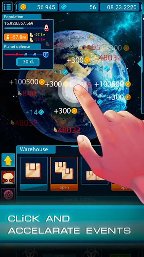 Every second in the game Outbreak Infection: End of the world is one day. Tap to screen to speed up time for extinction and infection. Follow the indicators: population, increase, decrease, etc. The power of destroying huge in world simulator.