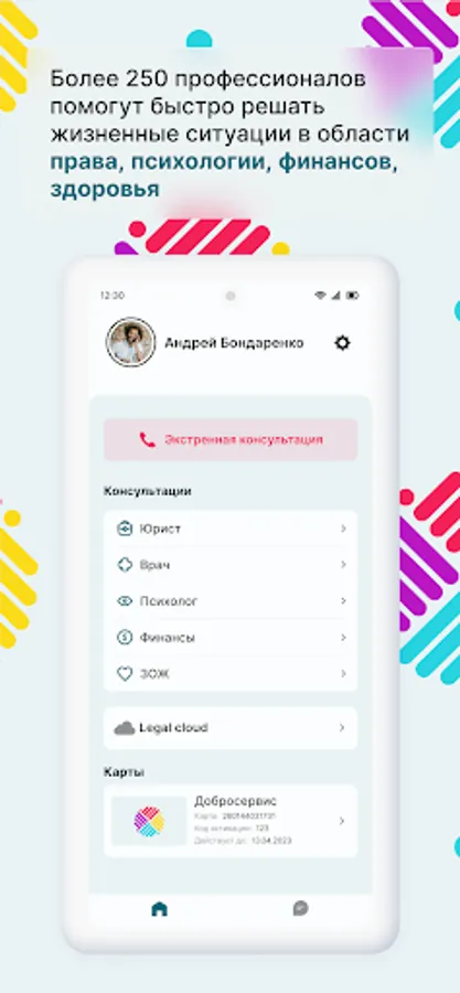 The mobile application "DOBROSERVICE" is a remote consultation of psychologists, doctors, lawyers, financiers, healthy lifestyle consultants and other specialists to quickly solve personal problems 24/7.