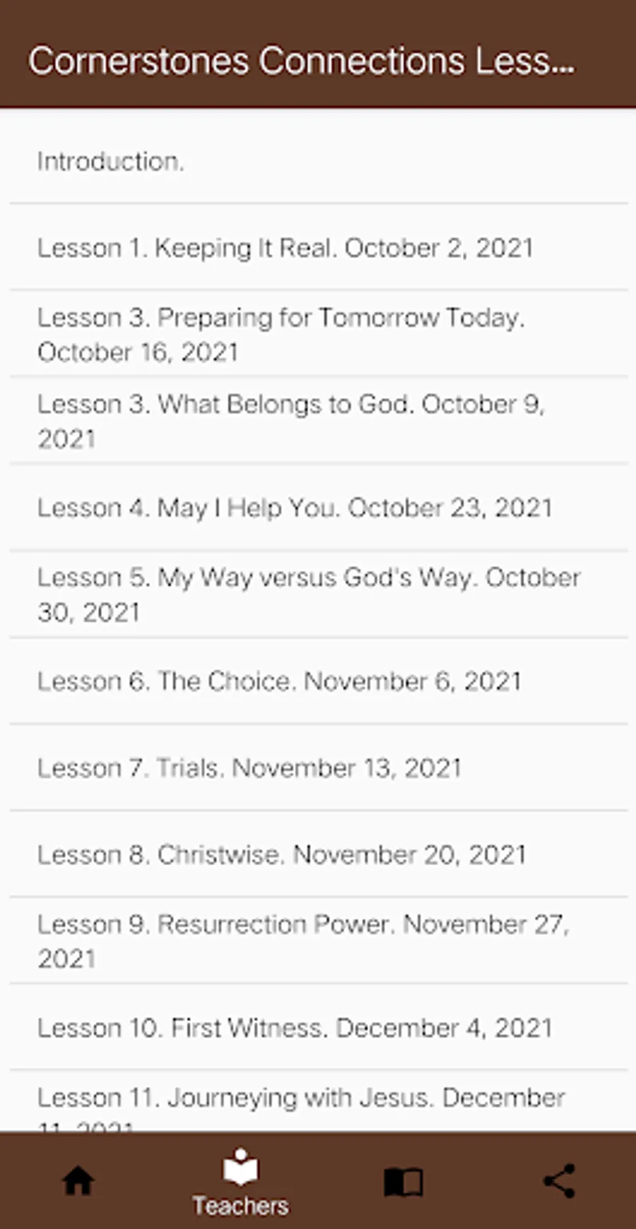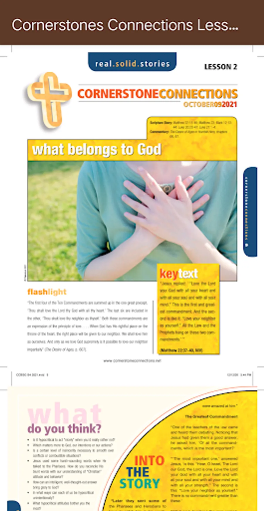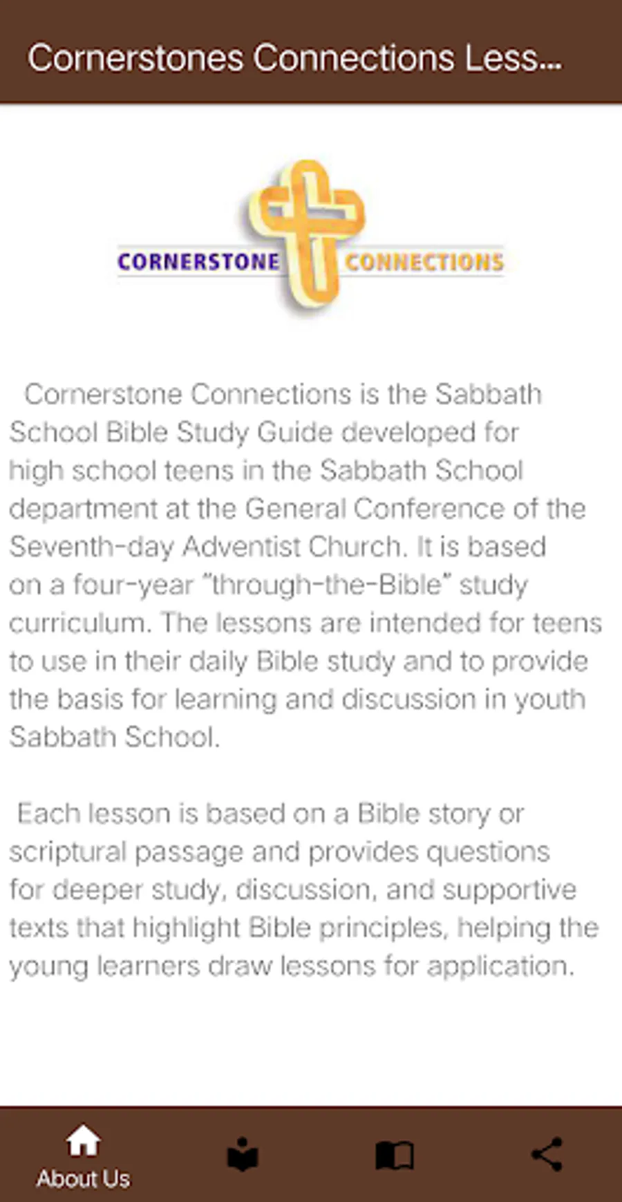 Cornerstone Connections is the Sabbath School Bible Study Guide developed for high school teens in the Sabbath School department at the General Conference of the Seventh-day Adventist Church. It is based on a four-year “through-the-Bible” study curriculum. The lessons are intended for teens to use in their daily Bible study and to provide the basis for learning and discussion in youth Sabbath School.