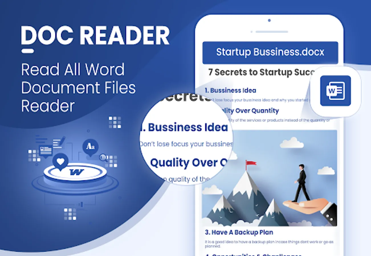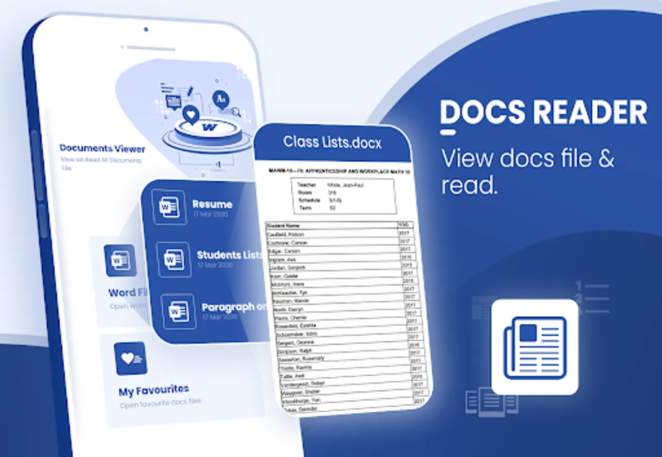 Make your reading easy with the Docx reader app:memo:. This application is a quick way of reading your word documents. Office file reader lists all word files, doc files:memo: in one place, in your android. This office file opener app is an offline docx file reader app that works without any internet connection. You can open, view, read, share, rename or delete your word office doc files through the docx viewer application. Open and read all your files with Docx extension easily. Read and view docx word documents that contain lengthy essays, comprehensive texts, and paragraphs :page_facing_up:with just a single click with this free office word viewer and reader application.
