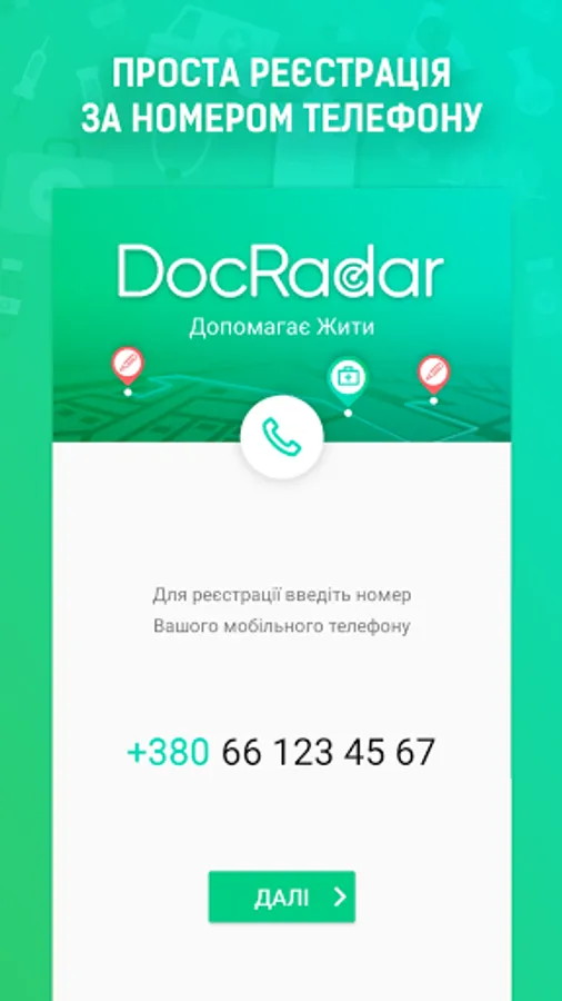 DocRadar is a program that helps healthcare professionals and clients find each other in minutes. You can be at home, at work, visiting, moving around the city, knowing that at any time of day next to you are professionals ready to provide any qualified, including free - emergency care. With DocRadar you can order the help of a specialist with one touch and pay for it with a bank card or cash in these cities and countries.