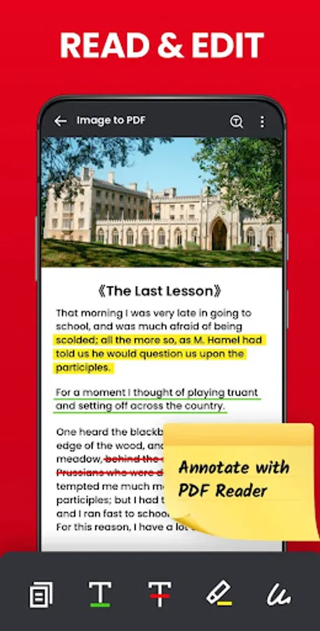 • Add PDF notes and comments, highlight, underline, and strikeout text