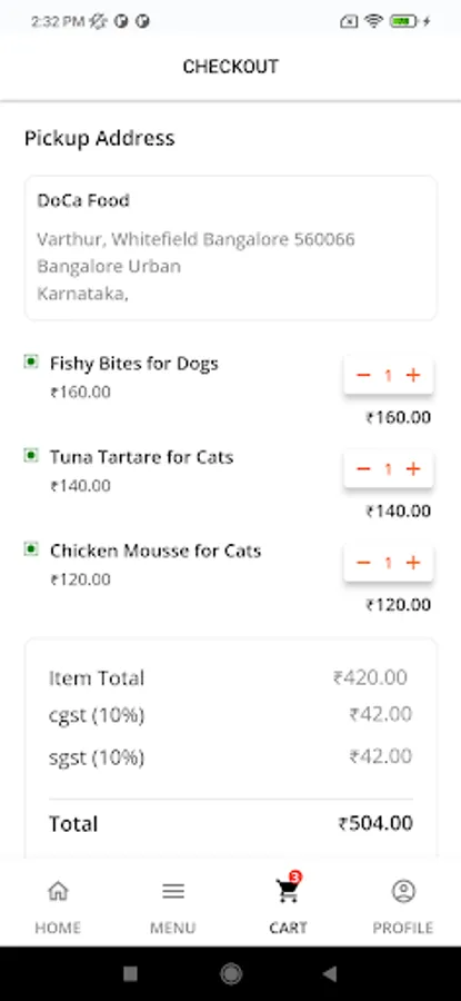Convenient Ordering: Ordering your pet's meals has never been simpler. Use the app to explore our menu, select from a variety of mouthwatering options, and place your order effortlessly. It's a seamless and user-friendly process designed with your convenience in mind.