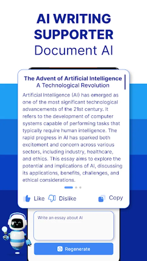In addition to providing you with top-quality content, this AI writer app also saves you time, effort, or even gives you new ideas, helps you find inspiration. With the assistance of our Document AI, you can generate ai story, letters, blogs, articles, comments and other types of content in just a few minutes. This is a great way to save time and focus on other important tasks, whether you are an amateur or a professional writer.