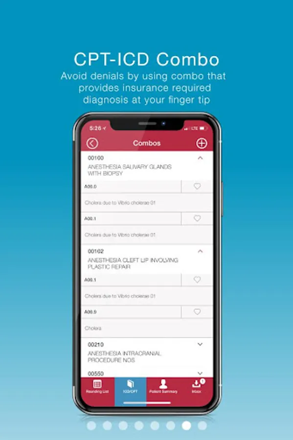 • CPT-ICD Combo to avoid denials of surgery or procedures codes.