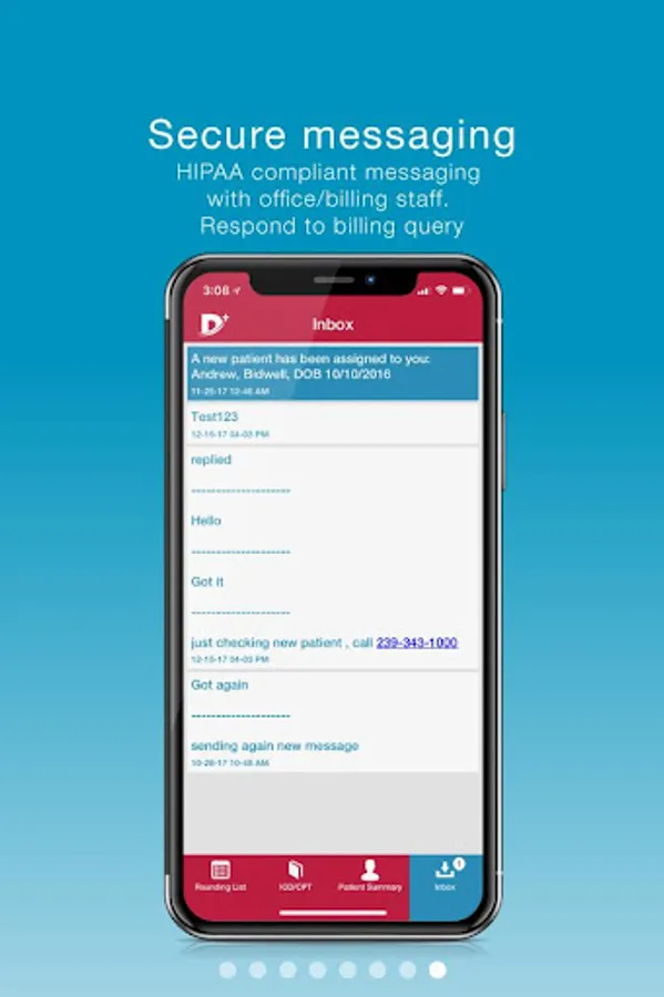 COMMUNICATION: HIPAA compliant messaging with staff and biller