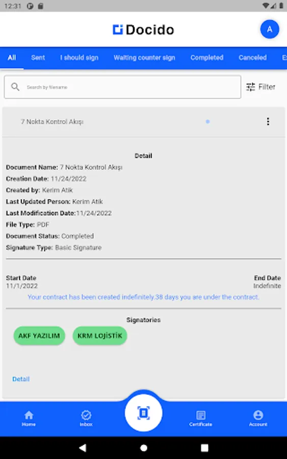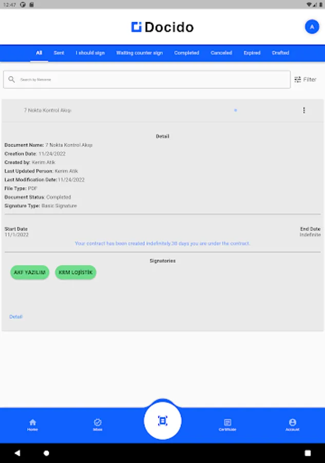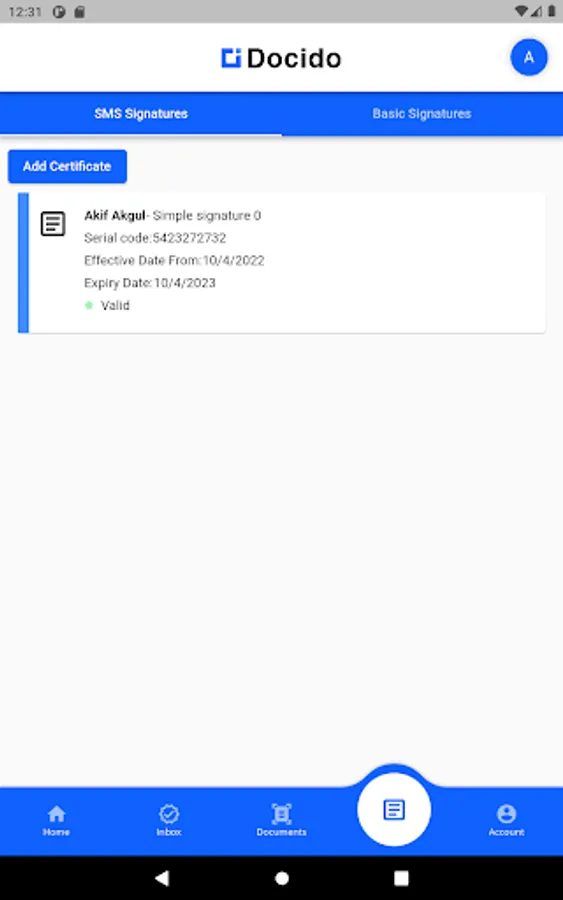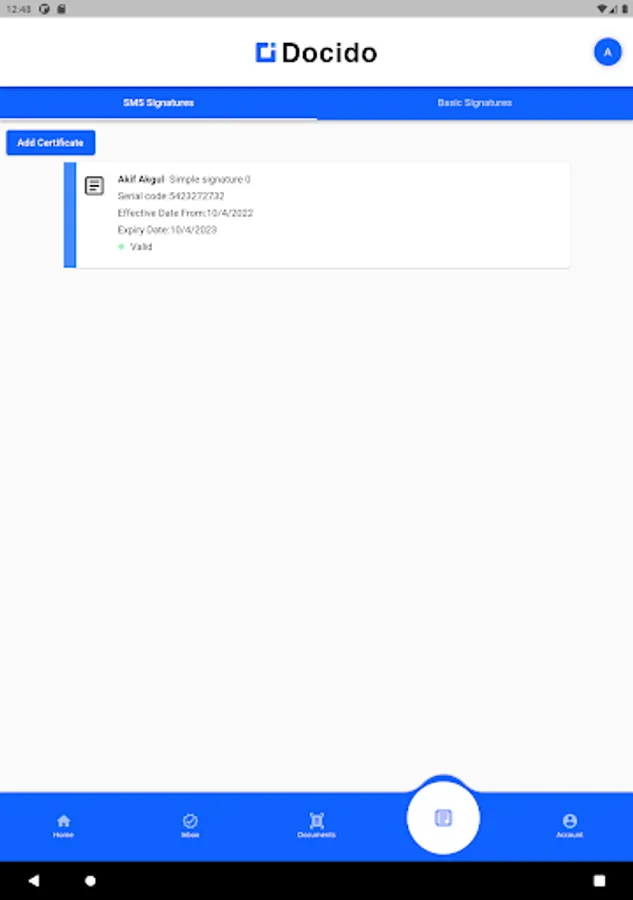 Manage in Docido. Manage your e-Signature, sms signature and basic signature.