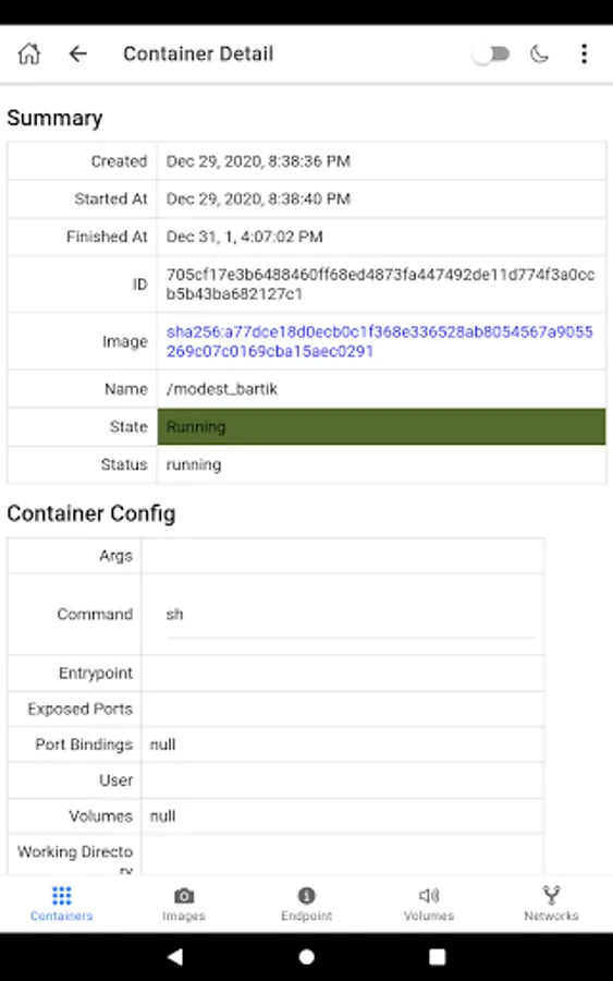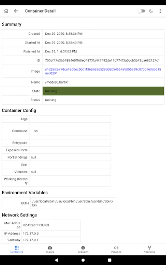 - Inspect container detail