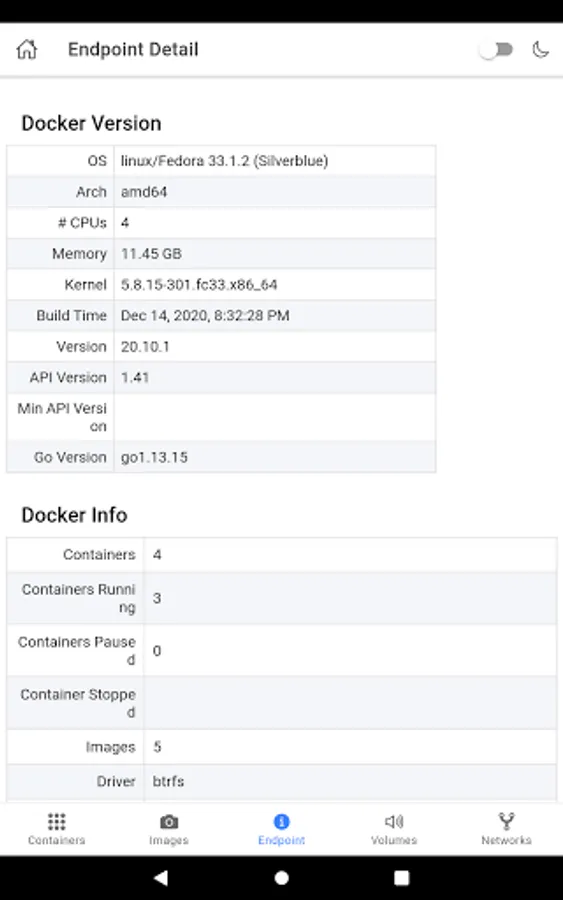 - View Docker Endpoint system inforation