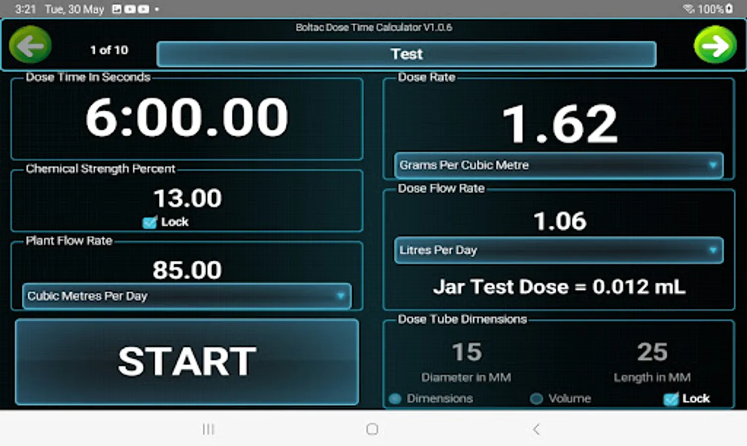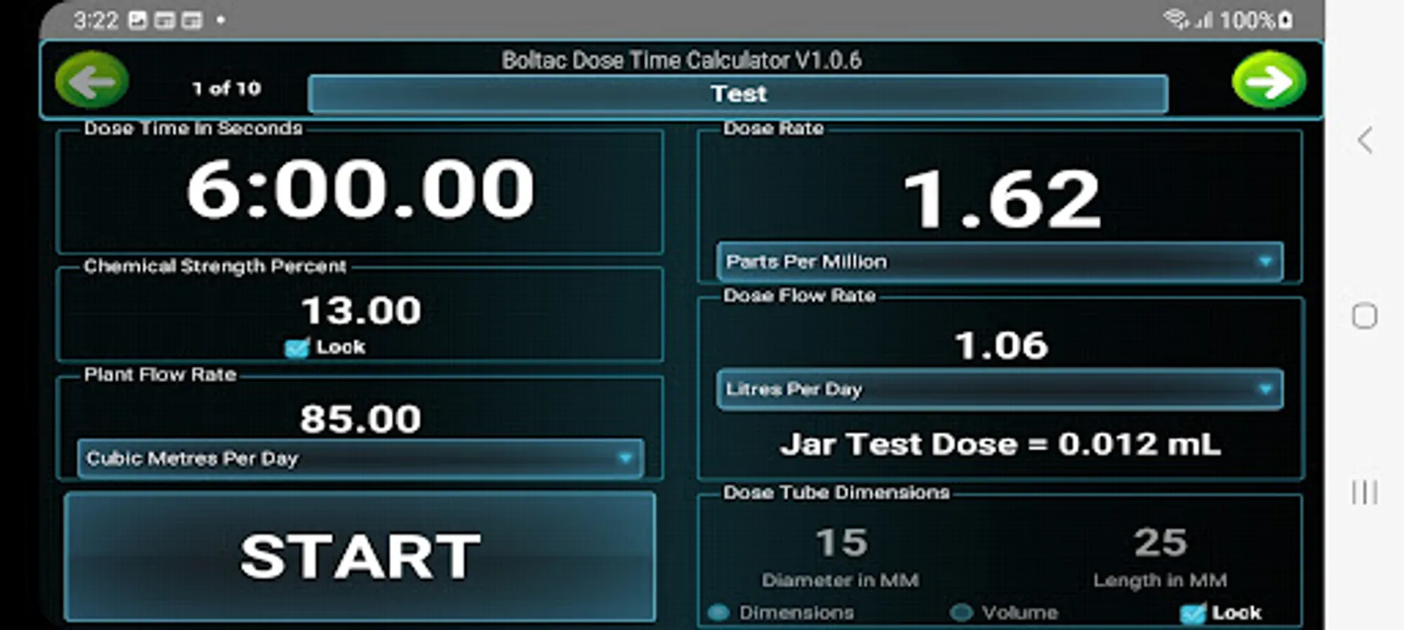 This simple tool allows you to calculate chemical dose rates by timing the dose flow rate.