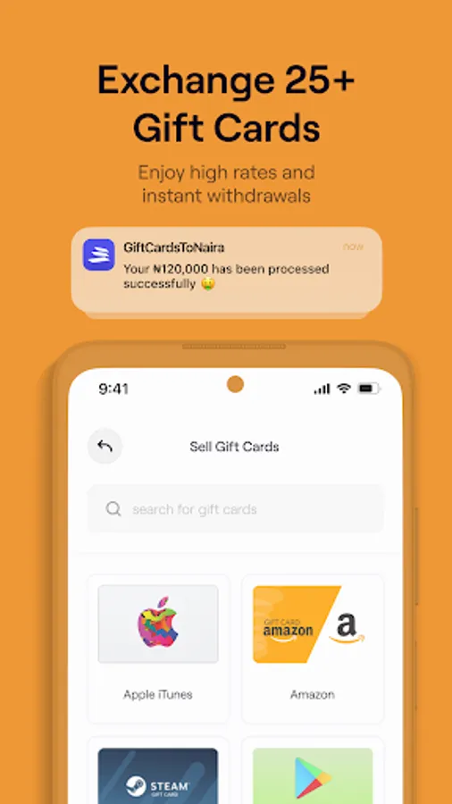 Discover the premier app for redeeming, selling, or trading gift cards for instant cash in Nigerian Naira or Ghanaian Cedis. With Version 3.0, we have refined the GiftCardsToNaira experience to provide a seamless and efficient gift card trading process at attractive rates.