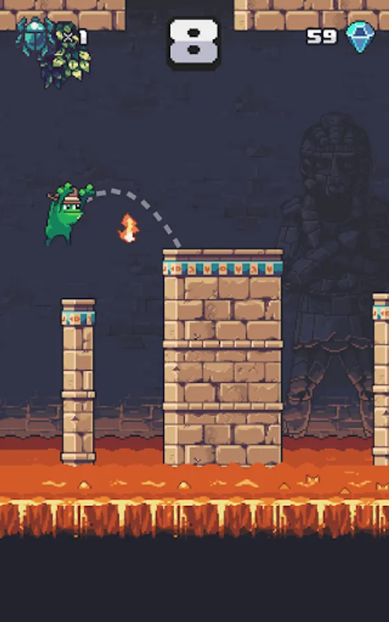 Jump your way through a fun and challenging environment in Temple Toad, an exciting new platformer. Collect gems to unlock 17 different hats. Increase your multiplier, and watch your score explode, by knocking scarabs off the platforms and into the lava below. Complete all the achievements and challenge your friends to see who can get the best score.