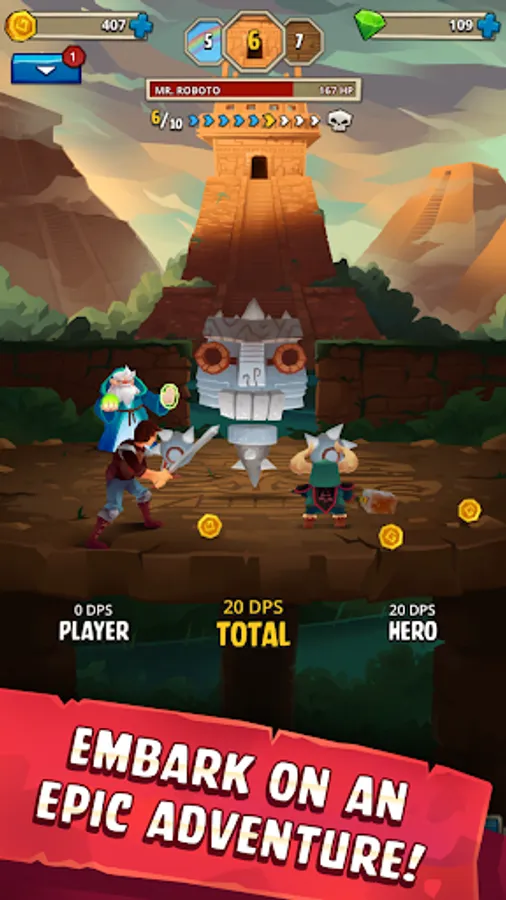Mutant monsters are taking over the world! You’re tasked with leading a team of heroes to help to return peace to the world. Travel to exotic locations, battle through tough dungeons, summon new heroes, collect shards, and unlock new skills.