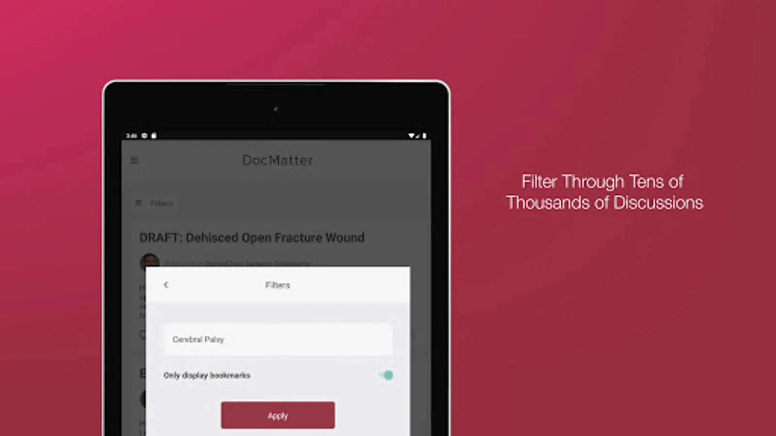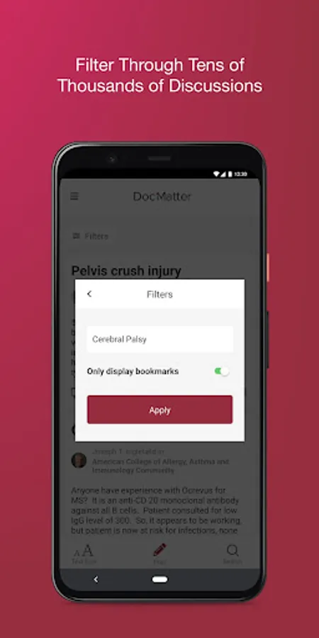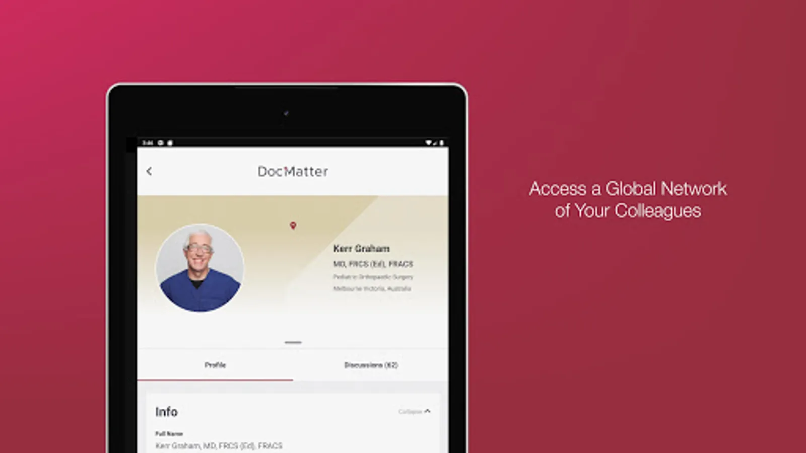 DocMatter brings the knowledge of the medical community to your fingertips. Explore the new paradigm of learning and sharing information through the first global knowledge and discussion forum for medical professionals. Expand your information base by leveraging the collective experience of your peers, along with other thought leaders from top institutions and practices around the world. And increase your visibility in the community by contributing to ongoing discussions and beginning new ones.