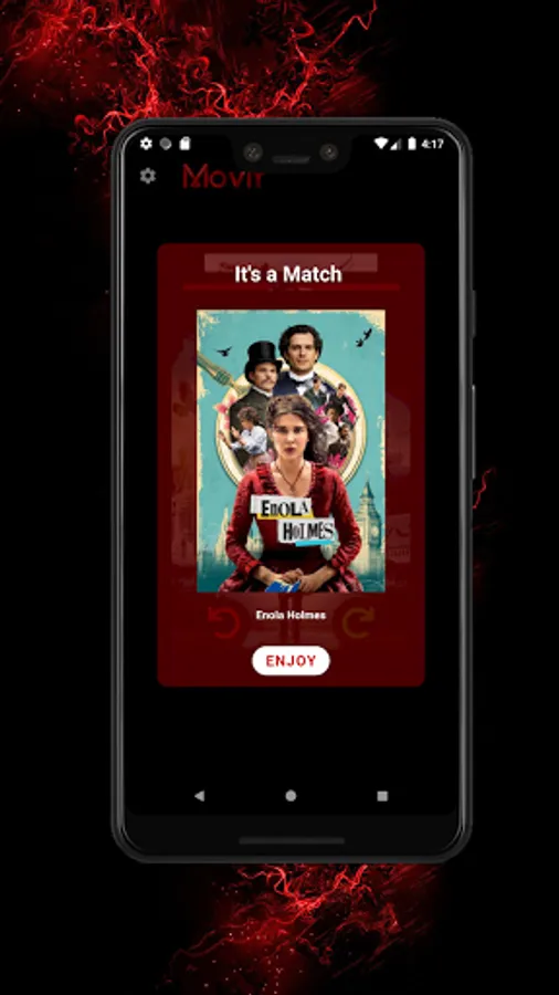 - Swipe Right if you like a Movie, until you have a Match with your Partner.