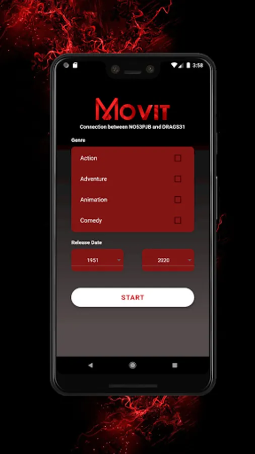 In just few steps, you can easily find your movie, connecting the app with your couple, friend or partner, to find a movie that both of you are agree to watch: