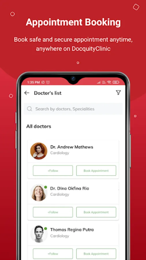Book an appointment - DocquityClinic has doctors registered across 20+ specialties. A patient can anytime book a secure and private appointment with other specialists as well.