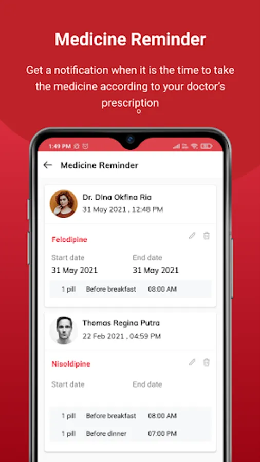 Get medical reminders - Now you don’t need to worry about missing medications due to your busy schedule or a habit of forgetting stuff! You can get automatic reminders for medications you need to take as prescribed by your Doctor on DocquityClinic.