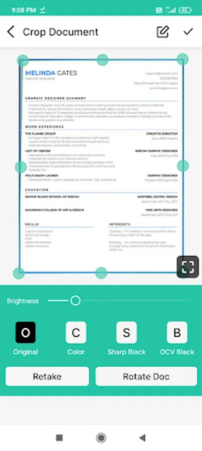 - Automatic document edge detection and perspective correction