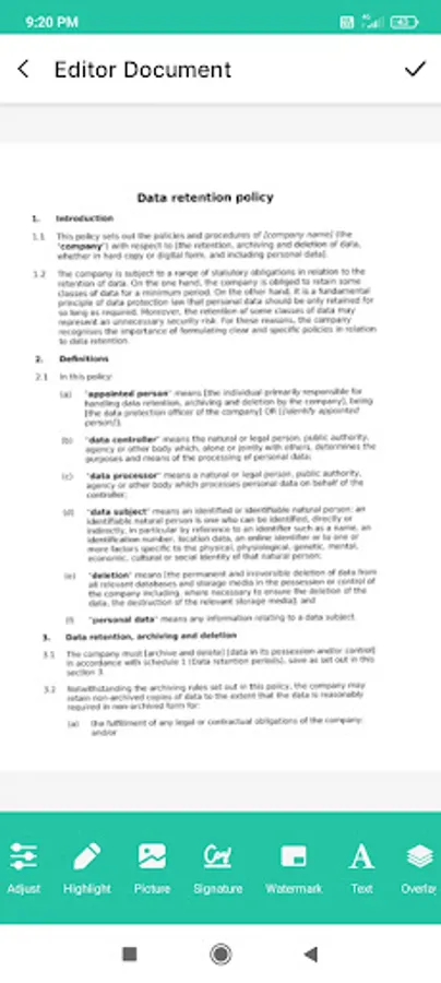 ✓ Easily share documents in PDF or JPEG format with friends or colleagues via various ways: post on social media, send attachment or document through email.