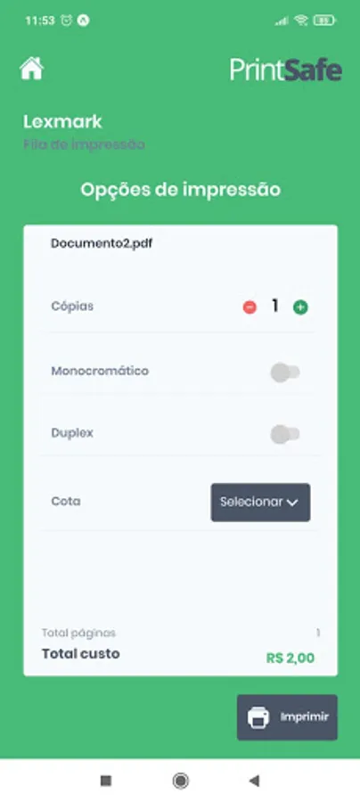 With this solution, it is possible to choose any printer or multifunction device via QR Code to release printing, in addition to being able to view all of your printing history using environmental indicators and quota balances.