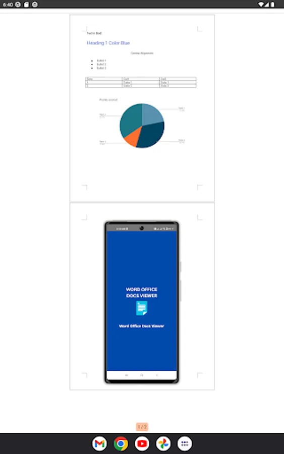 6. This office word docs viewer app provides high quality display of docx documents in style supporting images, bullets, script, report, table, chart display etc..