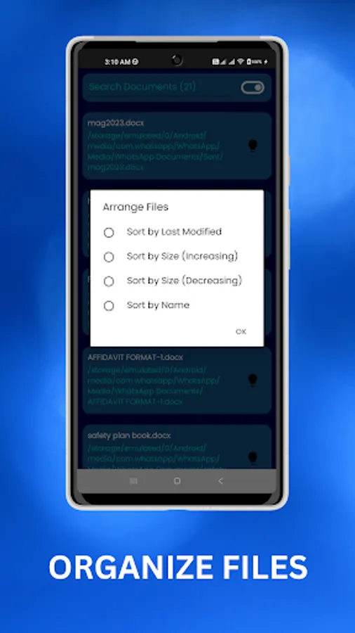 2. This is not just a sdocx reader but also a docx file manager which allows you to have all your word docx files in one list.